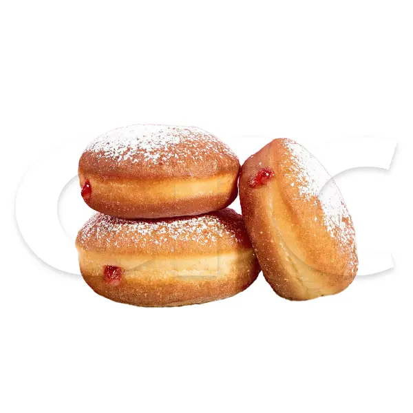 Продукт дефростировать при комнатной температуре в течении 40-50 мин, после дефростации выпечь при температуре 180-185 ° С, в течении 1-2 мин. Время дефростации может измениться от условий цеха, время и температура выпечки может изменятся от конструктивных особенностей оборудования. Кондитерское изделие из сладкого дрожжевого теста, обжаренное во фритюре, с вишневым джемом джемом внутри посыпкой из оранжевой сахарной пудрой.